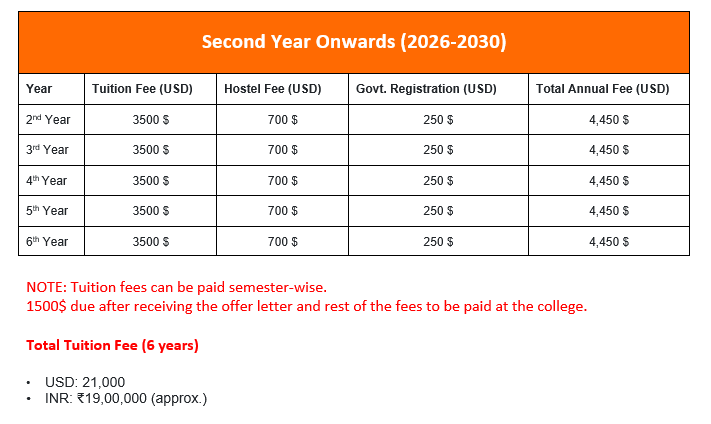 - Degree Awarded: Graduates receive the Medical Doctor (MD/MBBS) degree, recognized nationally and internationally.